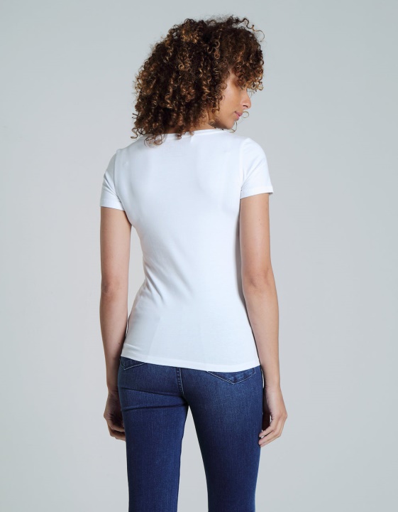 צת טריקו בסיסית בשילוב כותנה עם צווארון V עם תווית של המותג דיזל על המכפלת. הדגם לובשת XS. מומלץ להקפיד על המידה הרגילה שלך. 95% כותנה 5% אלסטן.