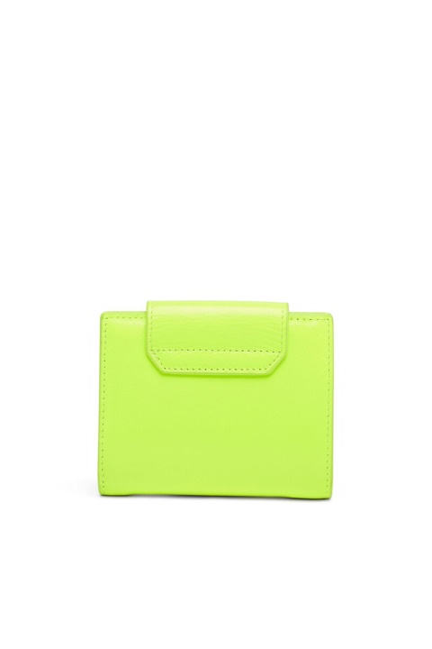קומפקטי, ארנק עור לנשים זה בעל מראה עיצוב חיצוני ניאון וחלק פנימי שחור מצויד בחר יצי כרטיסים, שרוול פתק וכיס למטבעות. החומרה ‘סגלגלה D’ שמנקדת את הלשונית מצופה באמייל בגוון תואם עיניים.