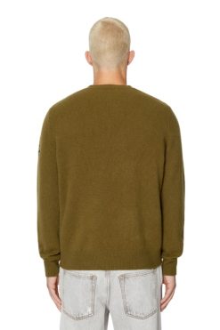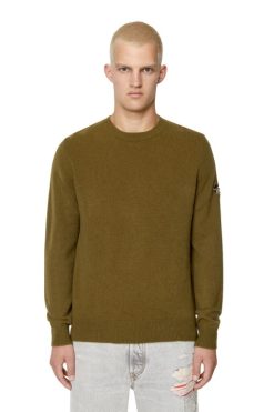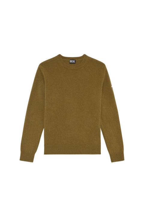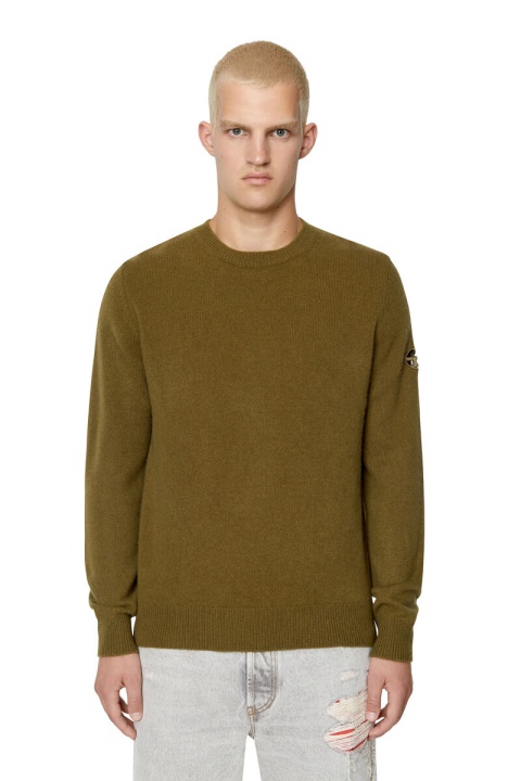 סוודר גברים בכושר רגיל סרוג משילוב צמר וקשמיר. מפורט עם לוגו ד רקום סגלגל פתוח בשרוול שמאל בחוט גווני.