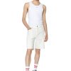 מכנסי גברים קצרים עם חמישה כיסים חתוכים באורך הברך, עם התאמה רגילה וישרה לרגליים. זוג הג’ינס הכחול פיקס הזה מועשר באפקטים של לכלוך עדינים ושטוף באבן לרכות.