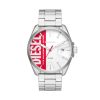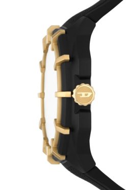 WARRANTYהשעון עם מסגרת 51 מ”מ של דיזל כולל חוגה שחורה מט, תנועה של שלוש ידיים ורצועת סיליקון שחורה.