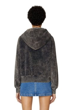 קפוצ’ון נשים עם רוכסן מבד כותנה. רקום על החזה עם הלוגו ‘דיזל תעשיה, חטיבת ג’ינס’, לסגנון זה יש התאמה רגילה וגימור משויש עם שטיפת חומצה.