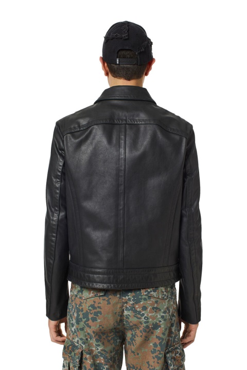 ז’קט עור בכושר רגיל זה כולל צללית נקייה נוסח שנות ה-70. מצויד במספר כיסי רוכסן, הוא מרופד בכותנה מוברשת.