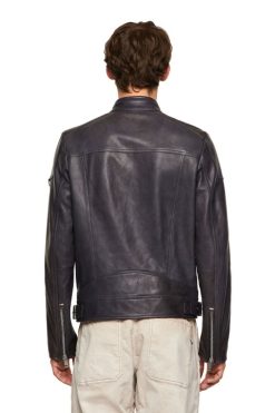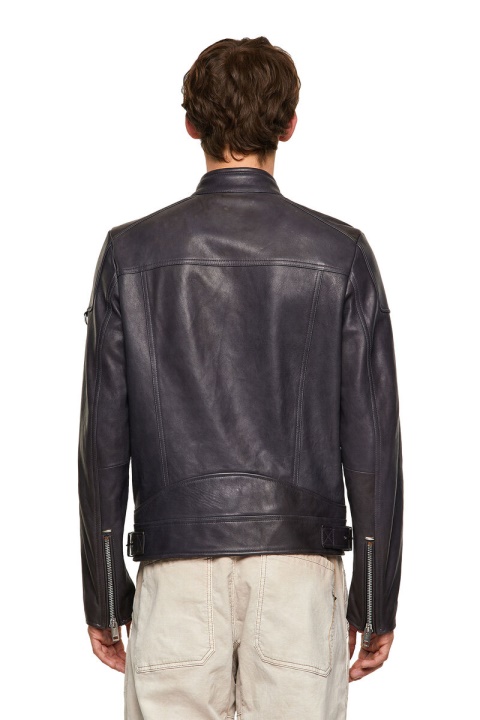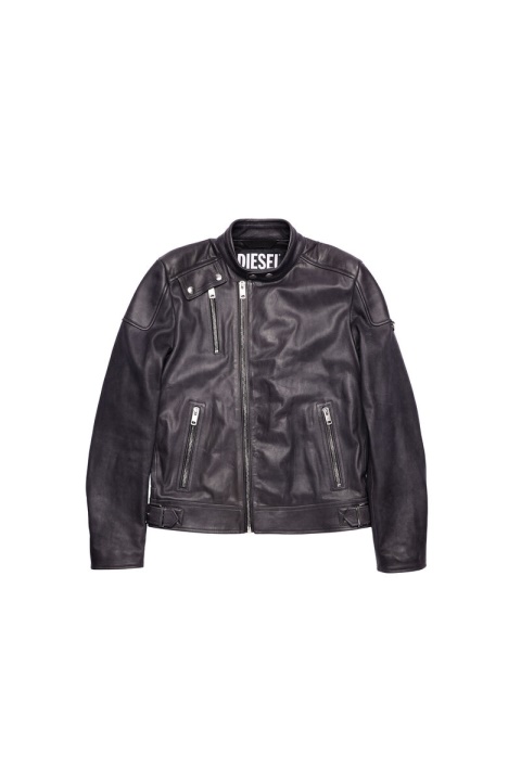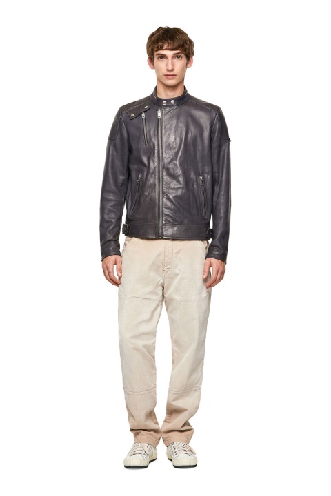 מעיל אופנוענים בגזרה רגילה עשוי עור כבש רך, עם צווארון דק ומכווני מכפלת אבזמים. כיס הרוכסן בחזה הימני כולל דש כפתור לחיצה.