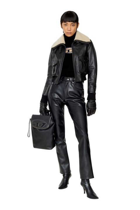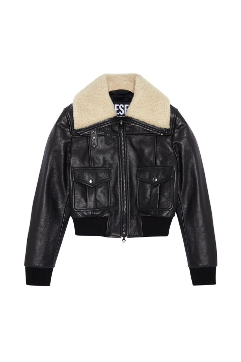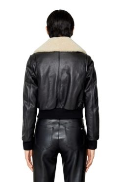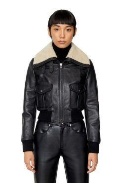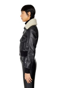 מעוצב על פי סגנונות טיסה קלאסיים, ז’קט בומבר לנשים זה עשוי מעור עם צווארון נדיב גזוז פרווה עבור מגע של ניגודיות. יש לו התאמה רגילה ובטנה מרופדת מרופד לבידוד.