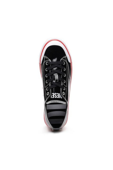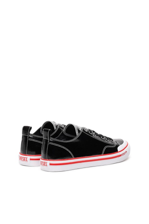 מתאמן קלאסי לגברים מעודכן בויניל. החלק העליון הנמוך המבריק מושב על סוליית גומי ו תפרים ניגודיים ומגן אצבע דק.