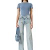 סגנון אתחול עם מותניים נמוכים וכיסוי גב גבוה יותר. הג’ינס הדק הקלאסי הזה עם אטיטיוד בוהמייני מחבק את הגוף מהמותניים ועד הברכיים. כביסה כחולה בינונית חיונית זו עשויה מבד פיקס ומטופלת עם תוף שוחקים מיוחד. מראה הוינטג’ מודגש עם שפם ואפקטים ניואנסים.