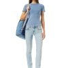 סגנון דק עם מוטן גבוה ורגל ישרה. הג’ינס הזה, מהנהן לצלליות של שנות ה-90, מעביר גישה מקורית של ג’ינס ומסיים עם זבוב רוכסן. כביסה כחולה בינונית חיונית זו עשויה מבד פיקס ומטופלת עם תוף שוחקים מיוחד. מראה הוינטג’ מודגש עם שפם ואפקטים ניואנסים.