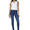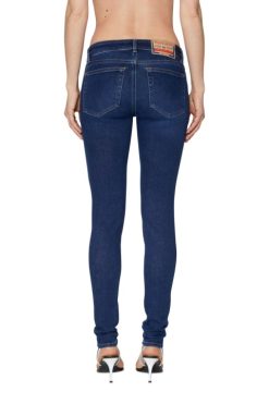 סגנון סופר-סקיני עם מותניים נמוכים במיוחד. הוא כולל זבוב רוכסן ופרטים נצחיים. כביסה כחולה כהה זו עשויה מבד סופר נמתח ומועשר בטיפולים עדינים.