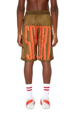 חלק ממגוון DIESEL SPORT, מכנסי גברים קצרים המתייבשים במהירות בנויים מבד עמיד בפני UV ומנדף זיעה. ניתן לכוונן את המותן האלסטית באמצעות חוטי הבנג’י והפקקים. ממותג עם כיתוב מקסי גרפי.