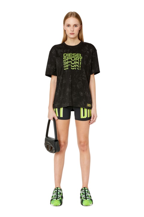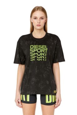 חולצת טי לנשים זו היא חלק ממגוון DIESEL SPORT ואפשרות צללית גדולה מדי. הוא עשוי מתערובת טכנית של כותנה מתונה ואפקטי צעדה בגווני כסף, וכיתוב בהשראת אימון על הגב.