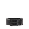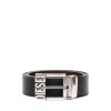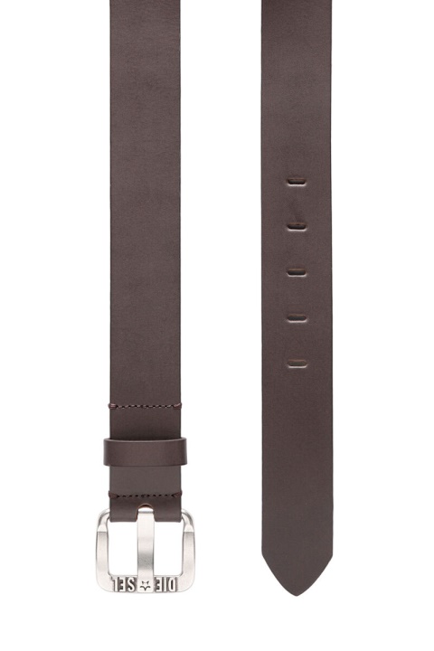 חגורה לגברים זו עשויה מעור חלק. אבזם המתכת שלו ממותג באותיות דיזל מוגבהות, בגימור כוכב חרוט על הסיכה.