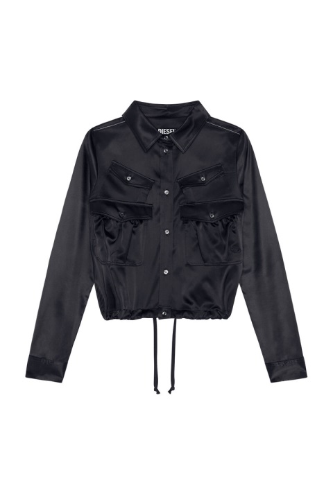 חולצה זו לנשים עם שרוולים קצרים עשויים מסאטן מתיחה. הפרופיל הדק שלו מכוסה בכיסי דש מכופתרים חופפים, רקומים בלוגו D בגוון D בצד שמאל.