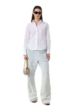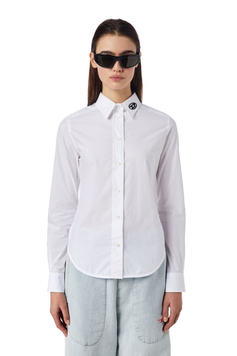 חולצה בגזרה דקיקה עשויה מפופלין כותנה קומפקטית, מעוטרת ברקמה סגלגלה של לוגו D על הצווארון. בגד זה יוצר באחריות.