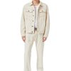 ז’קט ג’ינס לגברים עם צללית בגזרה רגילה. סגנון חורפי, מבודד בטדי אקרו רך הנמשך עד לצווארון. כביסה כחולה בינונית חיונית זו עשויה מבד פיקס ומטופלת עם תוף שוחקים מיוחד. מראה הוינטג’ מודגש עם שפם ואפקטים ניואנסים.