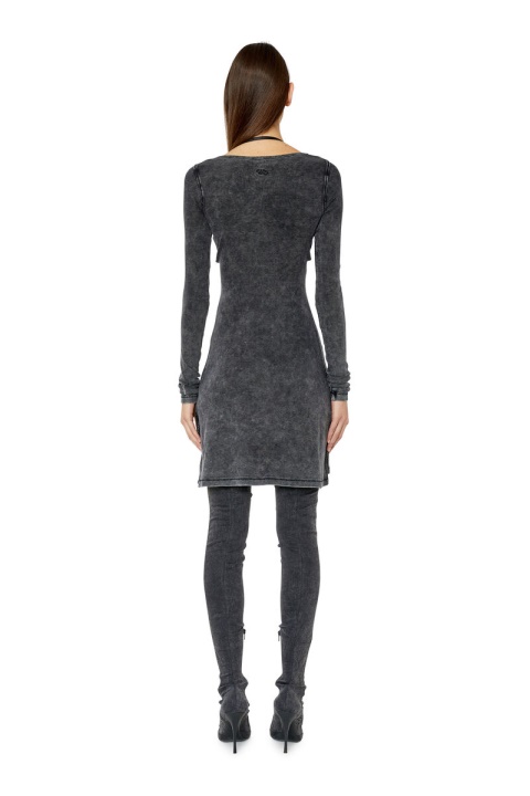 שמלה קצרה מכותנה נמתחת עם צלעות קלות. חומצה שטופה לתחושת רטרו, יש לו התאמה צמודה אך גמישה וחזית בלקונט גזוזת תחרה מצווה מתוך קו הצוואר העמוקיץ במיוחד של הנלי.