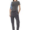 סגנון דקדיק תוספות אלסטיות במותניים ובחפתים. Track Denim הזה מעוצב בצללית יוניסקס. לכביסה זו גוון אפור כהה אחיד, עם אפקטים משומשים מעט בתפרים.