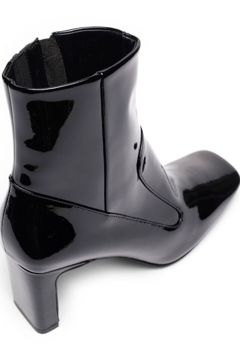 מגופים תומך עור פטנט עם עקבאם. הנעל מעוצת עם בוהן מרובעת ובעת רוכסן צד.