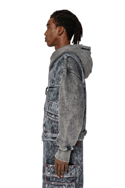 אפוד מטען לגברים בג’ינס משיש, עזר כיסים שימושיים מרובים וסגירת רוכסן. ג’ינס פיקס זה כולל שטיפת שיש אפור כהה, מועשר בגווני כסף לגימור ייחודי. יישומים וכיסים מתאימים לכביסה בצורה מושלמת כדי להעניק להעניק אור וצל ללא הפרעה.