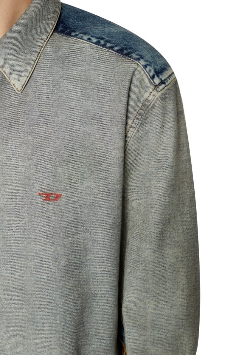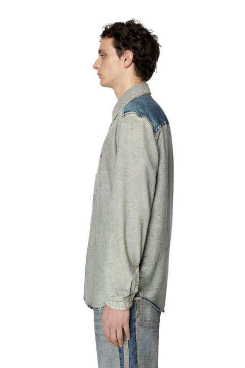 חולצת גברים כחולה מעוצבת מג’ינס פיקס עם טיפול באוזון, מלבד מבנה “בפנים החוצה” המשלבת את החלק הקדמי והאחורי של הבד, ויוצרת אפקט דו-גוני בלתי צפויה. יש לו התאמה רגילה קלאסית ומיתוג ד על החזה.