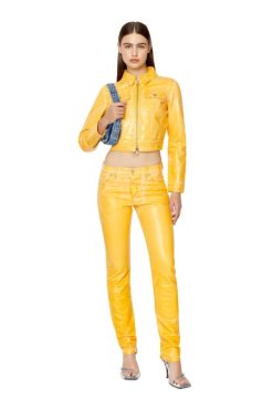 מעיל ג’ינס מצופה נשים מקולקציית FW Runway Show ’22. כולל צללית מעודכנת של משאית, הוא ננעל עם רוכסנים בחזית ובחפתים. צבעוני פיקס ג’ינס זה מאופיין בטכניקות בלעדיות היוצרות את אפקט ה”פילם” המבריק, כולל טיפולי חום וביסה מיוחדת לרכות ונוחות.
