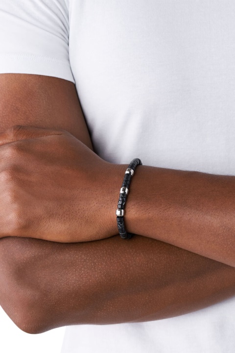 חרוזי אגת קו שחור משתלבים עם רונדלים מנירוסטה כדי ליצור מראה עצבני עבור צמיד דיזל לגברים זה. המראה מסתיים עם אבזם סליידר המודגש עם מטבע ראש מוהיקן מפלדת אל חלד. חומר: חצי יקר סגירה: סליידר גימור: מידות מט: 16.5 ס”מ-25 ס”מ