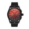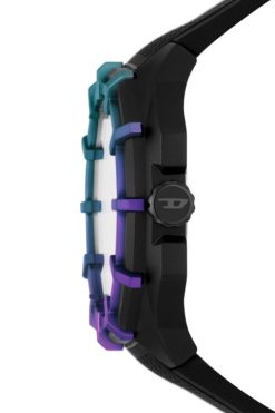 אחריות השעון עם מסגרת 51 מ”מ של דיזל כולל חוגה שחורה מט עם קריסטל ססגוני, תנועת שלוש ידיים ורצועת סיליקון שחורה.