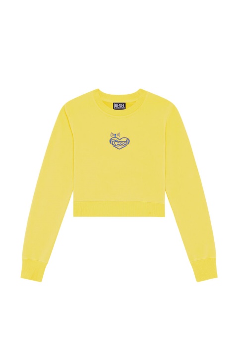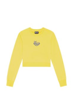 סווטשירט לנשים זה חתוך לגזרה קצוצה דקה מכותנה עם לולאה. מפורט עם לוגו לב קדמי רקום בתלת מימד וכיתוב ‘דיזל פאם’ מאחור.