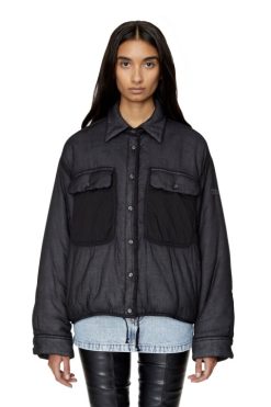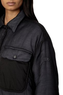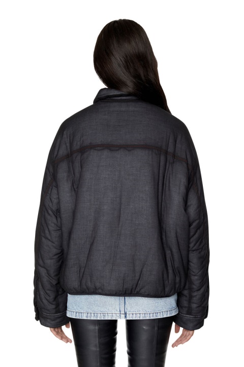 מעוצב בצללית חולצה, ז’קט נשים זה עשוי ממוסלין כותנה איטלקית שחורה ומרופד לחום. יש לו התאמה רגילה, כיסים גווניים וקשירת שרוך להתאמת המכפלת. רקמת לוגו סגלגל D מדגישה את השרוול.