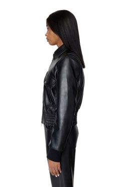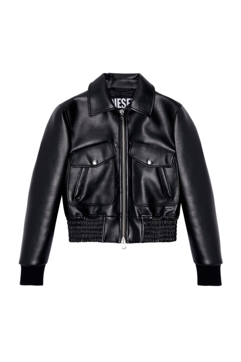 מעיל חורף לנשים בהשראת סגנונות טייסים. עשוי מ-PU חלק מלוכד עם ג’רסי, מפציץ מרופד זה בעל התאמה רגילה, כיסים גדולים עם כניסה כפולה ולוגו מתכת D דיסקרטי בשולי.
