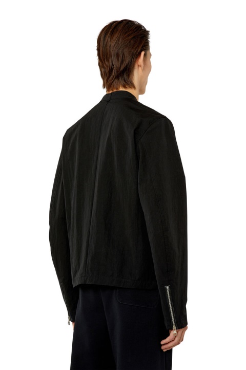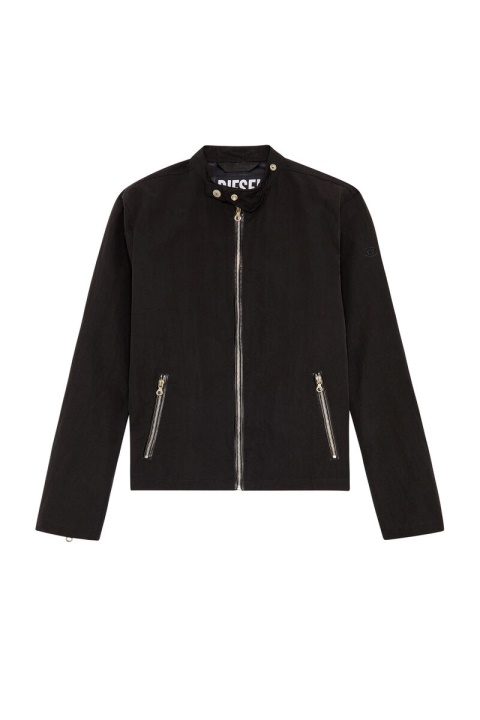 ז’קט גברים בכושר רגיל זה עשוי מקנבס ניילון-כותנה, מעודכן במראה ומראה מקומטים. הצללית הנקייה, בהשראת האופנוענים, כוללת צווארון כפתור לחיצה ורקמת לוגו גווני על החזה.