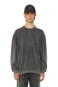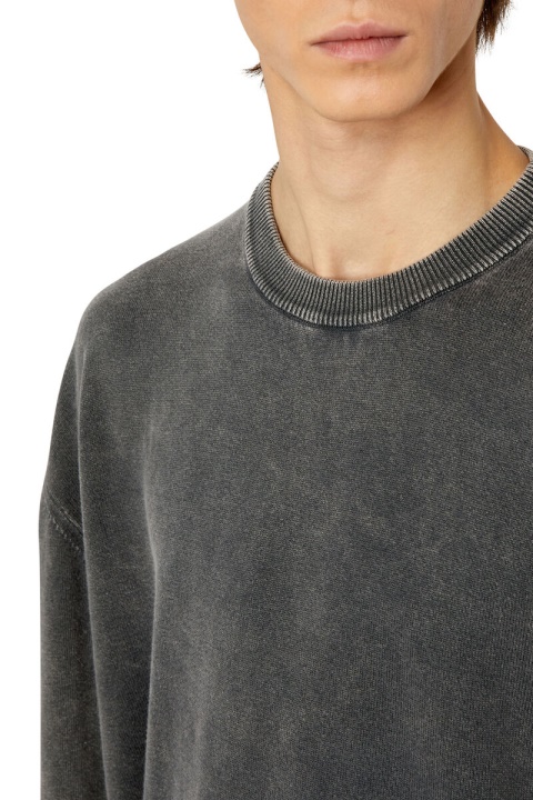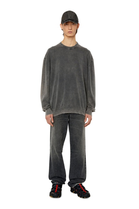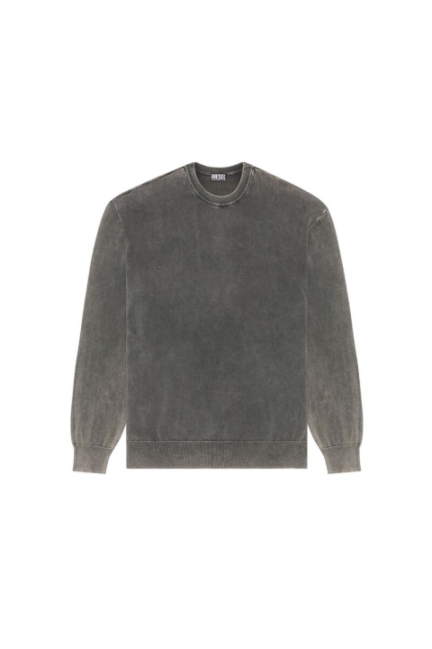 מטופל ליצירת דהייה לא סדירה, סוודר גברים זה מסתובב מכותנה ובעל התאמה אוברסייז. הגב מפורט עם הדפסה לוגו אדום.