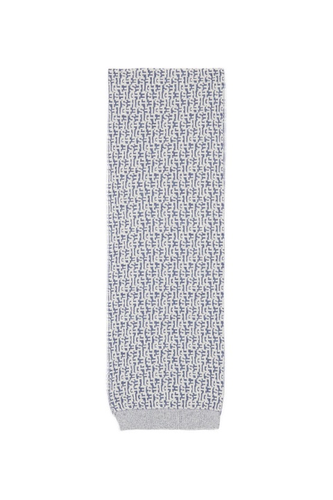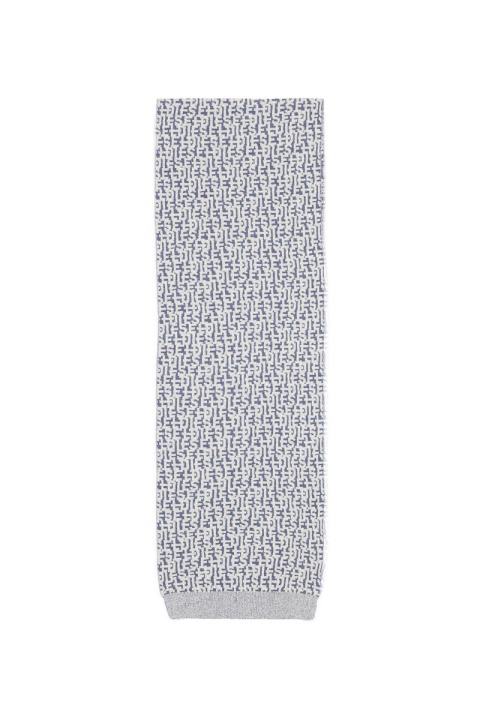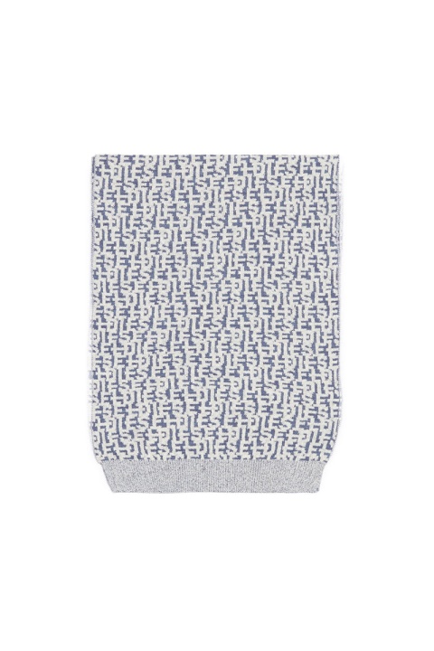 צעיף לשני המינים עשוי מתערובת צמר סרוק, מכיל גוון כחול מאנג’ בהשראת ג’ינס. מוטיב המונוגרמה הוא סרוג ג’קארד באמצעות חוט בוקל בתערובת כותנה, יוצר מרקם ועומק.