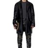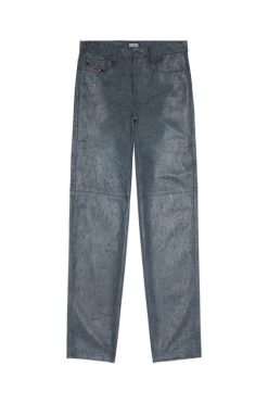 מכנסי גברים אלה מעורער טלה מצופה שסיים עם טיפול סדוק כדי לחשוף את הצבע הכהה יותר מתחת. יש להם צללית בהשראת ג’ינס והתאמה רגילה.