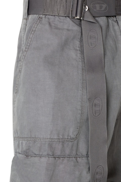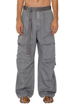 מכנסי קרגו רפויים לגברים עם ברכיים ארגונומיות וחפתים עם שרוך. הבגדים צבועים לתחושת חיים, הם נחתכים מאריג כותנה-פשתן עם רצועות ואבזמים תועלתניות. חגורת המותן מפורטת עם סמל ג’קארד ‘ד’.