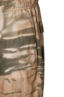 מכנסי גברים בגזרה רגילה מרכיבים מטוויל נוזלי של TENCEL Lyocell, בהדפסה דיגיטלית עם מוטיב הסוואה. בציפוי רצועת מאתן אלסטית וכיסים בצד ובגב.