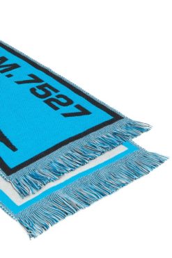 צעיף כחול לגברים זה עשוי מתערובת צמר חמימה. ממותג עם לוגו ‘ארקטי זוהר’ בצבע ג’קארד, שוליו עם עיטורי שוליים ארוכים.