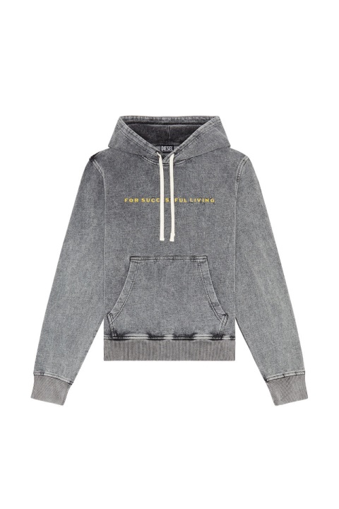 קפוצ’ון לגברים עשוי כותנה בהתאמה רגילה, צבוע בגד וטיפול לגימור צבע לא אחיד. מודפס עם המוטו ‘לחיות מוצלחות’, החזה נקרע בלייזר כדי להגביר את המראה השחוק.