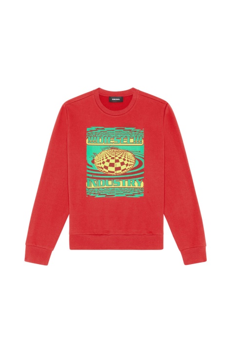 סווטשירט גברים בכושר רגיל עשוי מג’רסי כותנה מעורבת עם גב רך עם לולאות. מפורט עם הדפסה פסיכדלי של דיזל תעשייתי על החזה.