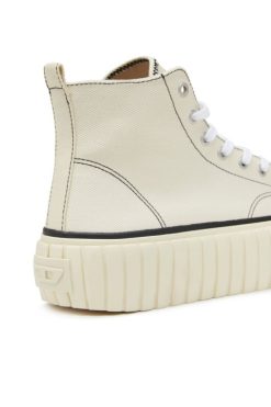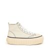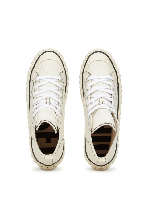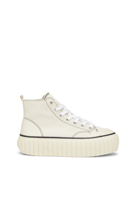 נעלי ספורט אלה בנויות מג’ינס קנבס, משופרות עם תפרים גלויים וכובע אצבע עבה מגומי. הצללית הגבוהה שלה נתמכת על ידי סוליה פלטה מגופרת עם מרקם צלעות שמנמן ולוגו ד מאחור.