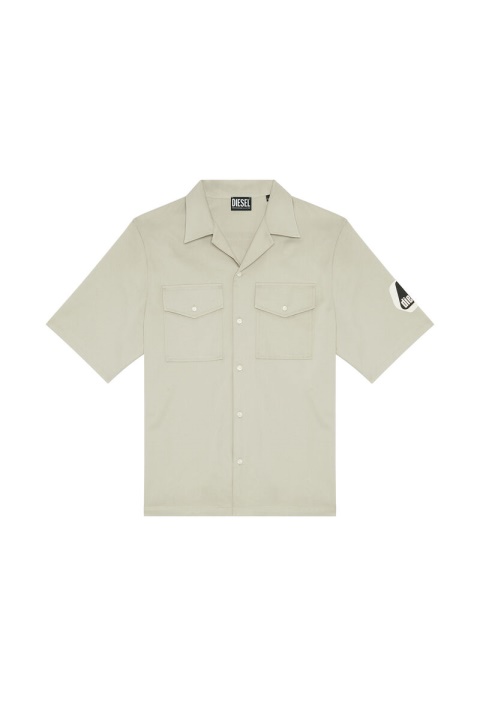 חולצת באולינג רפויה לגברים, עשויה אריג כותנה אורגנית כפולה. כולל שני כיסי דש מכופתרים, הוא כולל לוגו מקסי תעשיית דיזל מודפס על הגב.