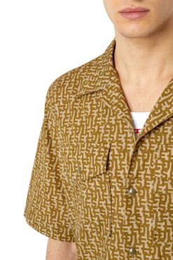 חולצת באולינג לגברים זו חתוכה להתאמה רופפת מפופלין מכותנה, ומתהדרת בהדפסה דיזל בגוונים גוונים.