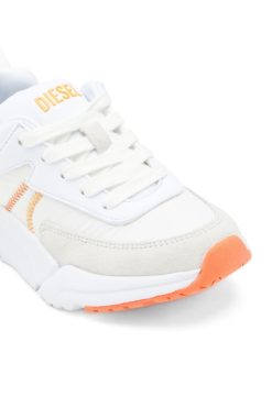 נעל יוניסקס, נעלי ספורט נוסח ריצה לילדים עם רשת מרובעת, זמש ובד טכני עליון עם תפירת זיגזג ולוגו מודפס של דיזל. סוליית האמצע המרופדת היא שמנמנה אך קלת משקל, בגימור עם סוליה דו-גונית אחיזה.