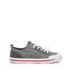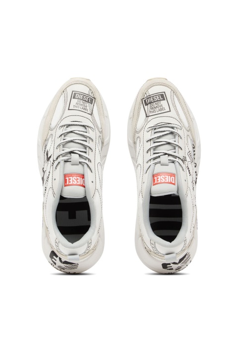 ריצה לנשים נוסח שנות ה-200, חתוך מניילון מבריק ועליו לוחות מרופדים רכים ועיטורי זמש וינטג’. מונח על סוליה מרופדת שמנמנה, הוא מפורט עם תפרים ניגודיים, הדפסים גרפיים ומיתוג ד ייחודי בצד.