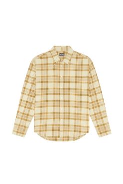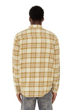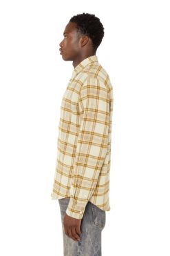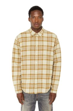 חולצה משובצת לגברים בגזרה רגילה, חתוכה מפלנל כותנה באפקט סלאב. הצווארון מעוטר בלוגו ד רקום.