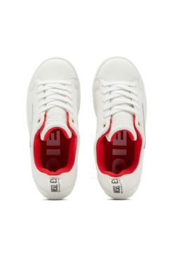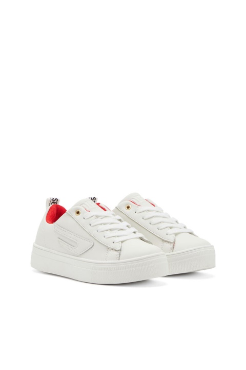 נעלי סניקרס חלקות לילדים עשויות עור, כוללות סמלי אפליקציות ” וכרטיסיות משיכהD ממותגות. נעליים אלה, בעיצוב חסר מגדר, מגיעות עם שרוכים רזרביים התואמים את החיות הפנים ונשענות על סוליות פלטפורמה מגומי.