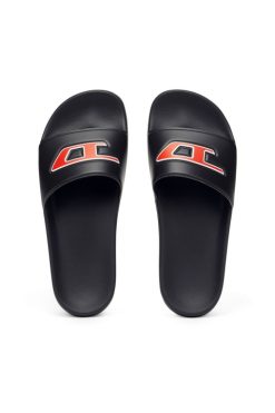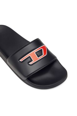 מגלשות מידות במים אלה עם מיטות רגליים מעוצבות ורצועות עליונות רחבות, ממותגים עם לוגו ראשוני D מוטבע. סיום עם סוליות לוגו אחיזה.