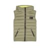עשוי מתערובת כותנה-ניילון, מעיל האימון לבנים זה בעל גוון שחור עשיר ורצועות שרוולים גווניים חלקים עם צנרת אדומה ניגודית. לוח מתכת ‘סגלגל D’ מעט את החזה.