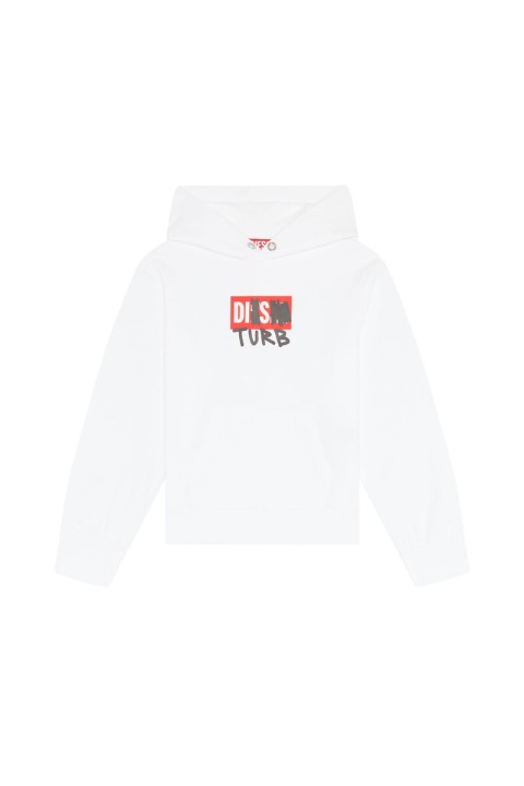 סווטשירט קפוצ’ון לבנים בנוי מבד כותנה. כולל עיטורי צלעות ועיניות ממותגות, הוא מעוטר בהדפס לוגו ‘Disturb’ של דיזל מקושקש על החזה.