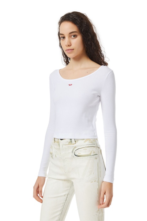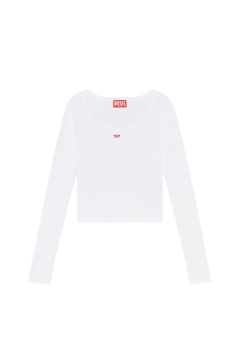 חלק עליון עם שרוולים ארוכים בגזרה דקה, עשוי מכותנה מתיחה מצלעת. הוא כולל תיקון ‘D’ קטן רק במרכז גבוה על החזה.